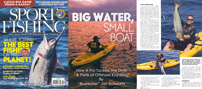 Bluewater Jon's Note: Due to the length of this article I wrote for Sport Fishing Magazine, I've elected to include excerpts rather than reprint the entire piece. Don't forget: to learn how to fish safely and effectively from a kayak, hire a licensed, professional guide. The information in this article is only intended to add what you learn from a guide on the water, not replace it.
