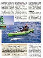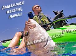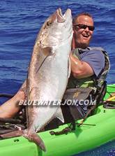 Any Given Day One of the toughest catches I've ever made from a kayak came from 400 feet of water, miles off of Kona, Hawaii. I sent a skipjack down to a deep ledge, and as soon as the bait hit bottom, it was inhaled by a beast that slammed my 80 pound rod against the kayak rail. The fight was strictly vertical and, therefore, brutal. Even with months of training and preparation, I had to use every fiber of my being to gain a single crank on the line. The fish didn't let up until it was 50 feet below my kayak. After 30 minutes of agony, a monster 70-plus pound amberjack surfaced, and as our eyes met, I couldn't tell which one of us was more spent. Following a quick photo op, I revived and released the fish. Needless to say, I took the next day off. Kayak Fishing Resources: Equipment: