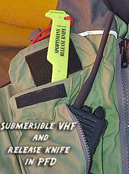 Conservatively judge your own experience: Start out in protected areas and work your way up, slowly, over a period of years. Here are some other tips to consider: Hire a licensed, professional kayak-fishing guide. Know how to use every piece of equipment you'll carry, especially your compass, GPS, and VHF radio. Always wear your life jacket, and know how to re-enter your kayak. Join an established online kayak-fishing forum, and learn from those with more experience. See resources at end of article for a list. Plan for each species of fish you might catch in the given area — especially the larger more dangerous species. Talk to other kayakers who have landed these fish. Know what to expect. Fish with a buddy. Should things go awry, he will be your lifeline. Safety in numbers also applies here: Your potential predators will be less inclined to approach a group of two or more boats. Play Safe All recreational boats must carry one wearable personal flotation device (PFD) for each person aboard. Kayak anglers should go one step further and wear that PFD at ALL times. A US Coast Guard- approved Type III jacket style pfd offers rings and pockets for keeping gear on your body.