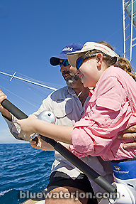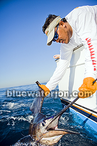 Clients have the choice of dropping a bait back to the raised, finning fish. The usual offering is a circle hook rigged ballyhoo. You can have the mates do it, but most anglers opt for the hands-on approach. Those new to the sport often appreciate a bit of help at first, and by the second day, they usually have the hang of it.
