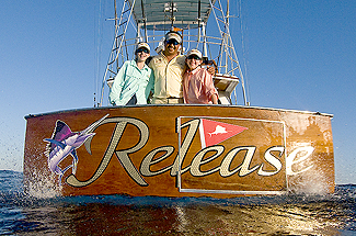 Not wanting to look like a complete doofus, I donned my swim fins, dove in with my new housing, and my own special Guatemalan adventure began. All the clumsiness I felt on deck vanished as I felt the clear warm water envelop me. Scanning the sun streaked blue depths, I made out the figure of a lone fish swimming slowly at the end of a line. That's him! I thought, and as I began to kick my fins, the distance between us gradually closed. The majestic fish kept a wary eye on me the whole time, but nothing but great pics ever came of this encounter and the ones to follow. By the time we called it a day at 3:30, Ric and his ladies had landed and released 29 sailfish, and I had more pics than I knew what to do with. Herb was right!