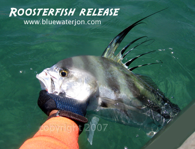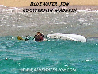 Roosters can get over 100 pounds, but are usually seen in the 15-30 pound range. Their meat is dark red, and nearly inedible, so they are uniformly released. At certain times of the year, they herd schools of fleeing baitfish right onto the shore. Let us not be mistaken, though; getting close to roosters is one thing; hooking them is another. Frustration is the name of the game, for above all, the rooster, or Pez Gallo as it’s known in Spanish, is a cunning and wily fish. For every person that has landed one, there must be hundreds that have tossed a bait or lure into their midst, only to watch in disappointment as these cunning predators follow their lure and veer off at the last moment. Even greater in number are those who have watched roosters crash on their baits without ever swallowing them.