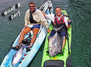 Suffice it to say that you should have seen the looks on the faces of the people at the weigh station this time- same silly guy on a kayak with three uluas in three consecutive days! And the look on the faces of my friends at the hotel was even crazier! Once again, I had brought back a monster ulua, and once again, I donated the fish to a worker at the hotel for a family feast.