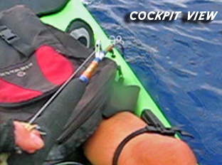 The next day, as the boat took me and my kayak through these same waters, I looked down, trying to catch a glimpse of one. No dice. And no dice was to be the theme of the day! They crew took me all over the place, dropping me off in several choice locations to paddle around with baited rods, but no real action occurred. Excitement slowly gave way to hopelessness and despair, and at 3:00, the boat's captain muttered the inevitable to me over the marine radio: "Sorry, Jon, I have to get the boat back to the docks. Let's get you and your kayak in the boat and head home...."