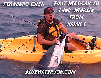 Turned out that Doug Olander and some of the people over at Sport Fishing Magazine were planning a kayak fishing mother ship trip in Cabo in late January, and I was somehow invited along for the adventure. We sent emails back and forth discussing what gear to bring. I kept in contact with Durance Lowendick, the owner of the Marlin Masters Sportfishing, the charter operation that would be running the kayak fishing mother ship operation in Cabo. Just before Thanksgiving, Durance shoots an email off to us about a remote location called Finger Banks, 57 miles off of Cabo, where he witnessed an incredible scene replete with pods of bait-crashing marlin, breaching whales, and acres of porpoise and tuna. My kinda scene! I’d never heard of the place before, but I figured, hey, let’s get in on the action while it’s hot, as in, drop everything and fish, now! There were a few problems with this. Everyone else was booked that week, and I was actually in the middle of a juice fast (during Thanksgiving Vacation, no less!) that had rendered me so weak that I could barely brush my teeth.