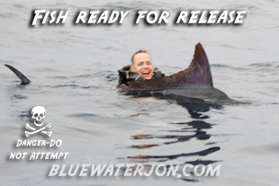 To see video highlights of the last few minutes of the fight with this marlin, click here.